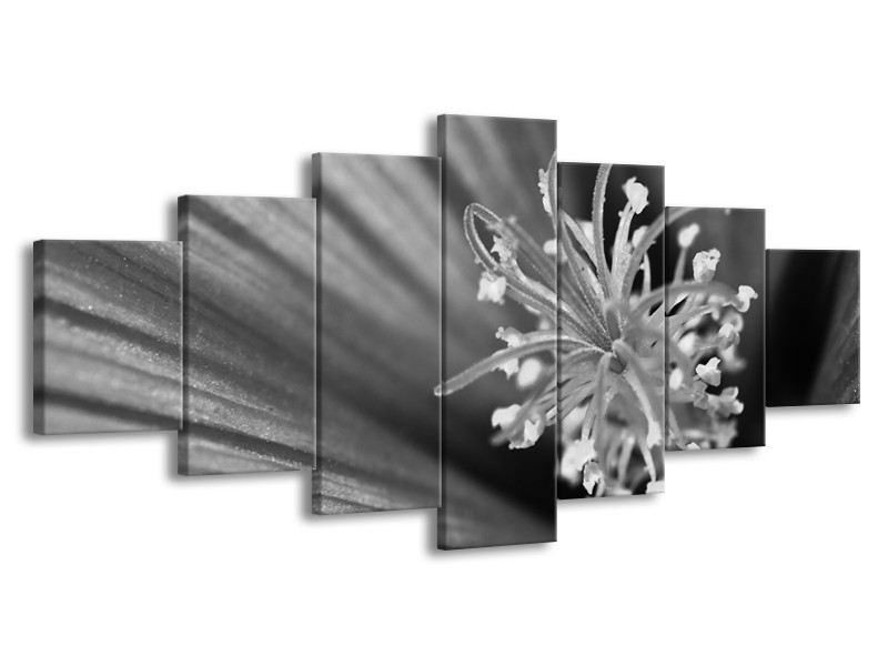 Canvas Schilderij Bloem | Zwart, Grijs, Wit | 210x100cm 7Luik