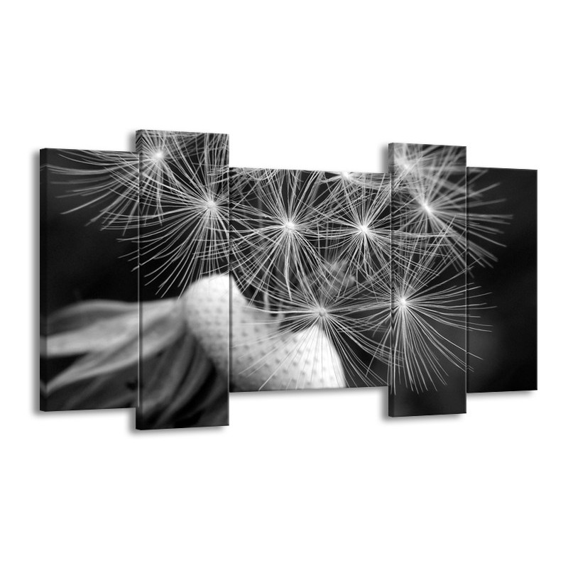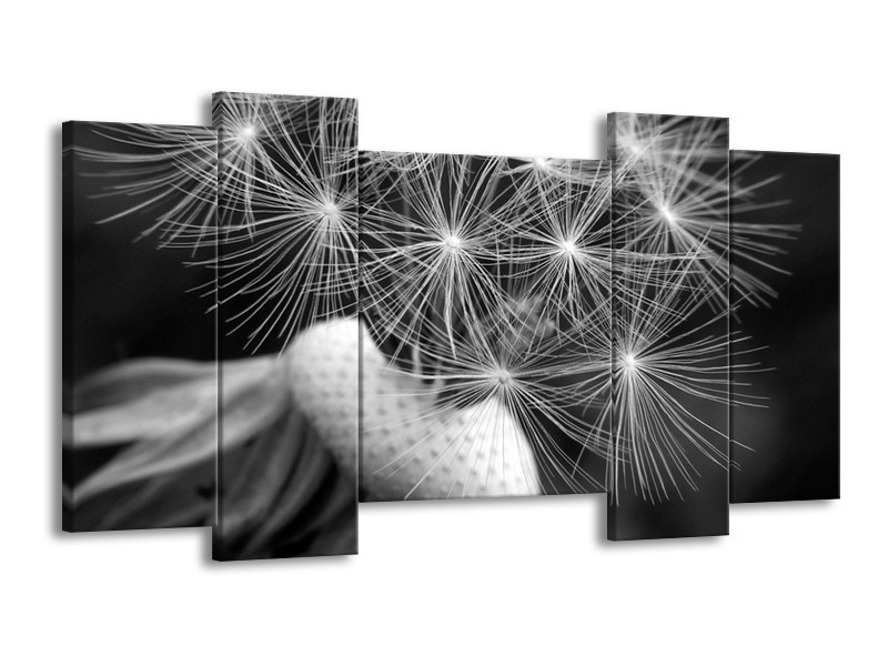Canvas Schilderij Bloem | Zwart, Wit, Grijs | 120x65cm 5Luik