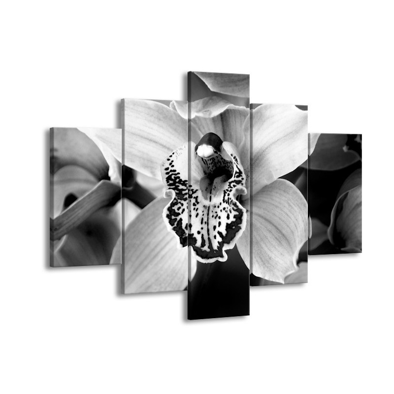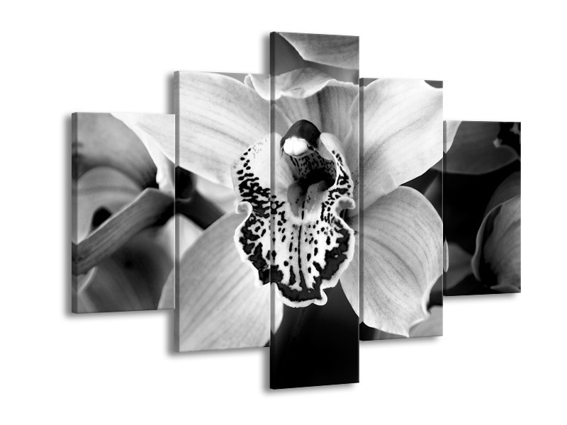 Canvas Schilderij Bloem | Zwart, Wit, Grijs | 150x105cm 5Luik