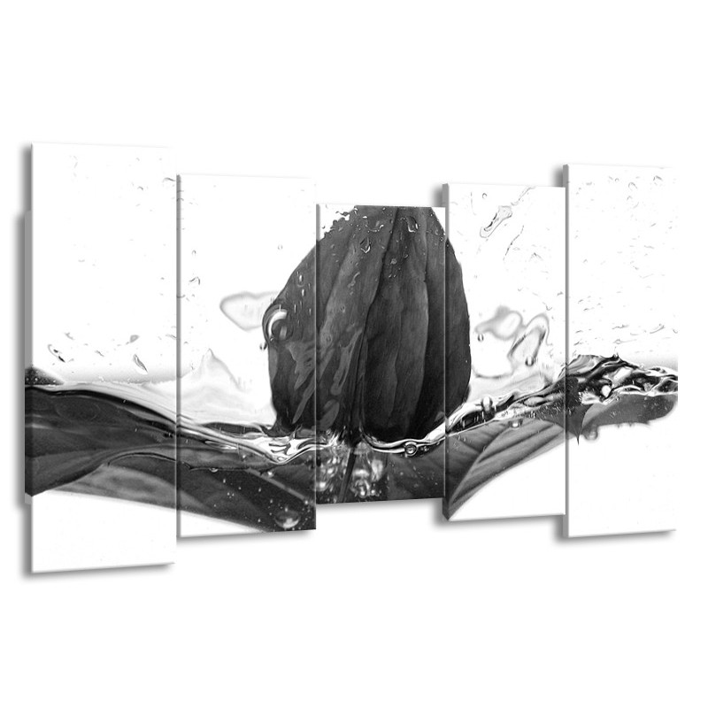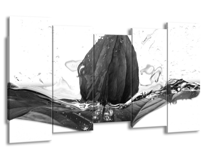 Canvas Schilderij Bloem | Zwart, Wit, Grijs | 150x80cm 5Luik