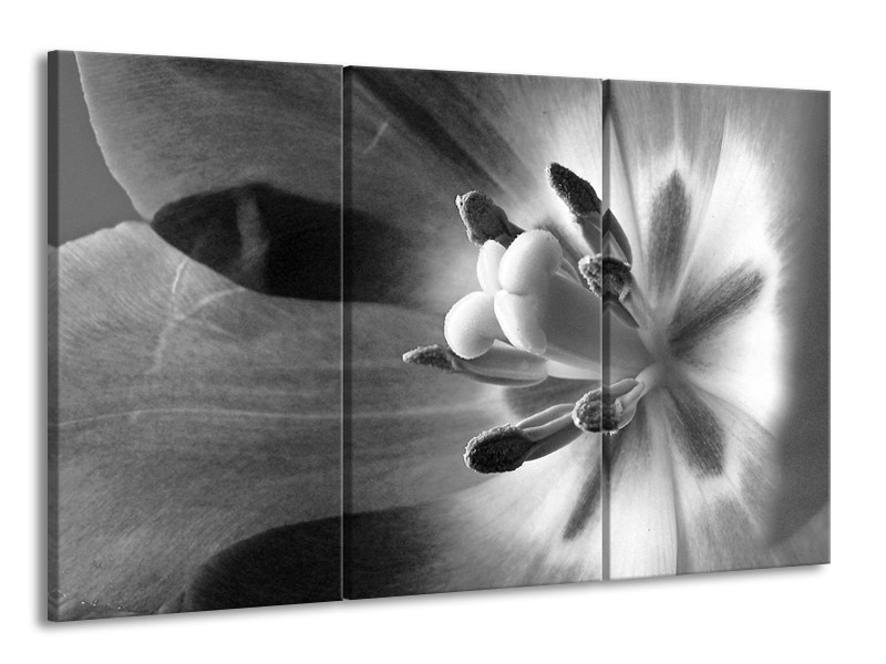 Canvas Schilderij Bloem | Zwart, Wit, Grijs | 165x100cm 3Luik