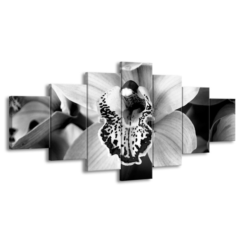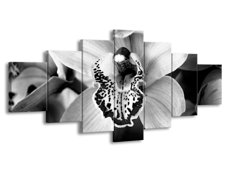 Canvas Schilderij Bloem | Zwart, Wit, Grijs | 210x100cm 7Luik