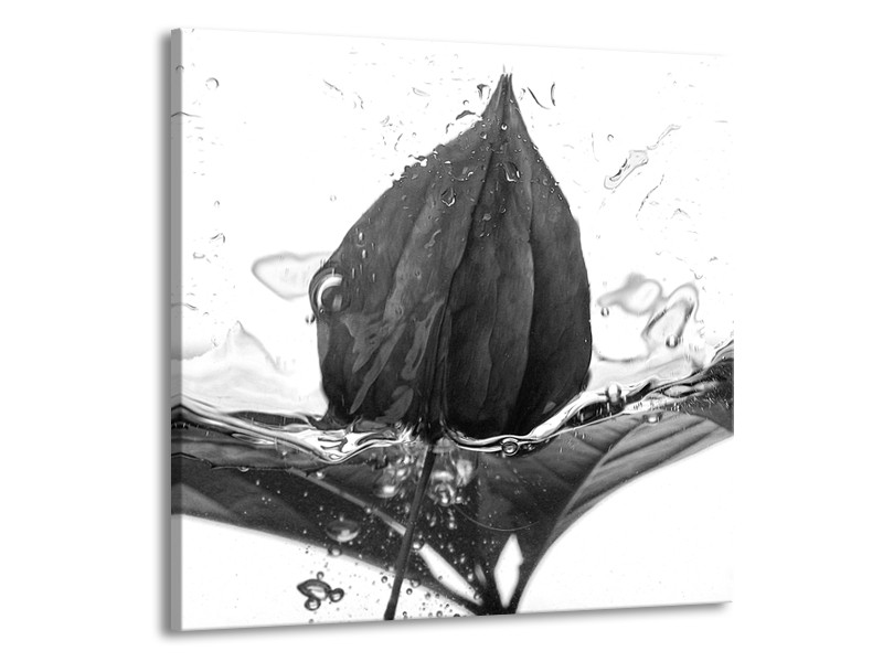 Canvas Schilderij Bloem | Zwart, Wit, Grijs | 50x50cm 1Luik