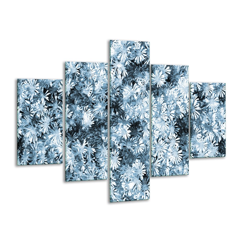 Canvas Schilderij Bloemen | Blauw, Grijs | 100x70cm 5Luik
