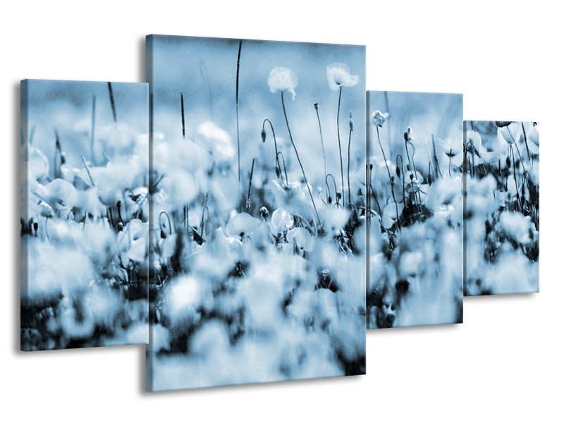 Canvas Schilderij Bloemen | Blauw, Grijs | 160x90cm 4Luik