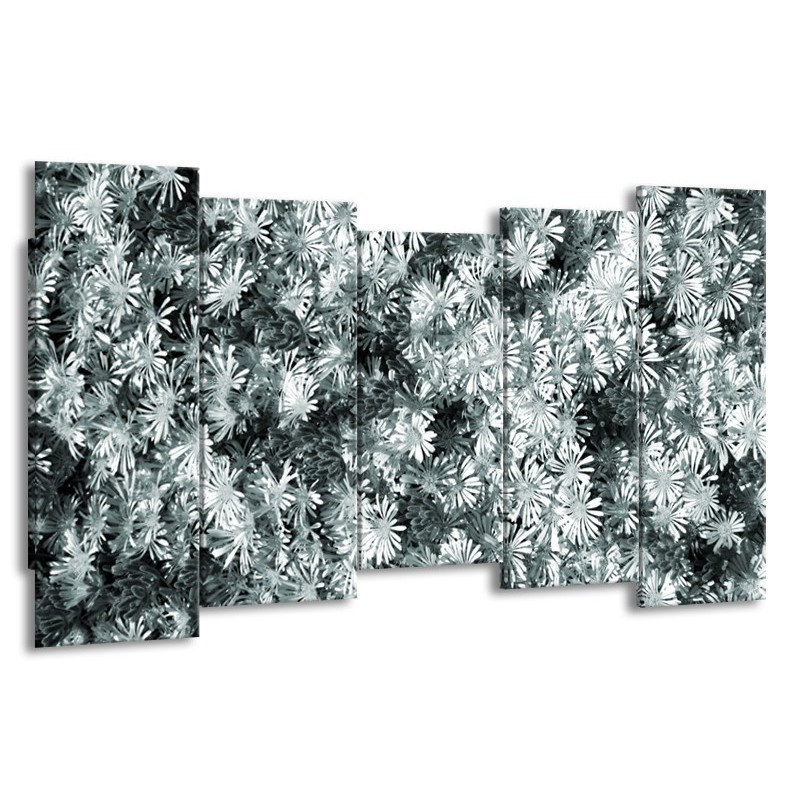 Canvas Schilderij Bloemen | Grijs, Groen | 150x80cm 5Luik