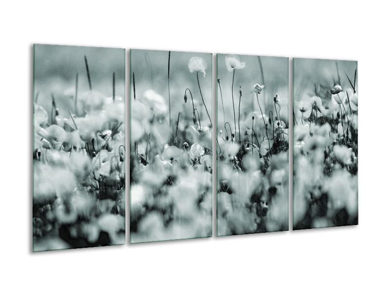 Canvas Schilderij Bloemen | Grijs, Zwart, Groen | 160x80cm 4Luik