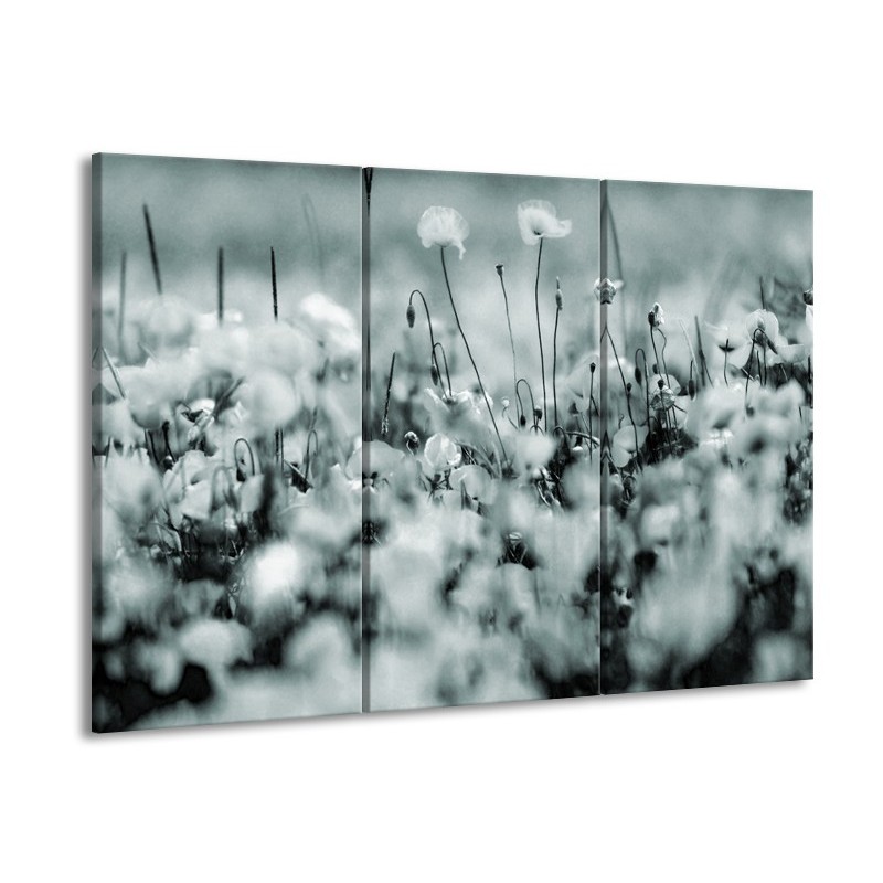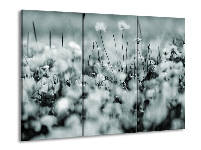 Canvas Schilderij Bloemen | Grijs, Zwart, Groen | 60x90cm 3Luik
