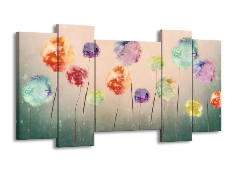Canvas Schilderij Bloemen | Groen, Crème | 120x65cm 5Luik