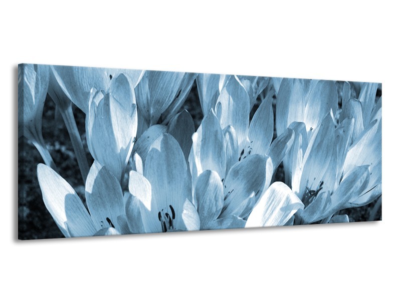 Canvas Schilderij Bloemen, Krokus | Blauw, Grijs | 145x58cm 1Luik