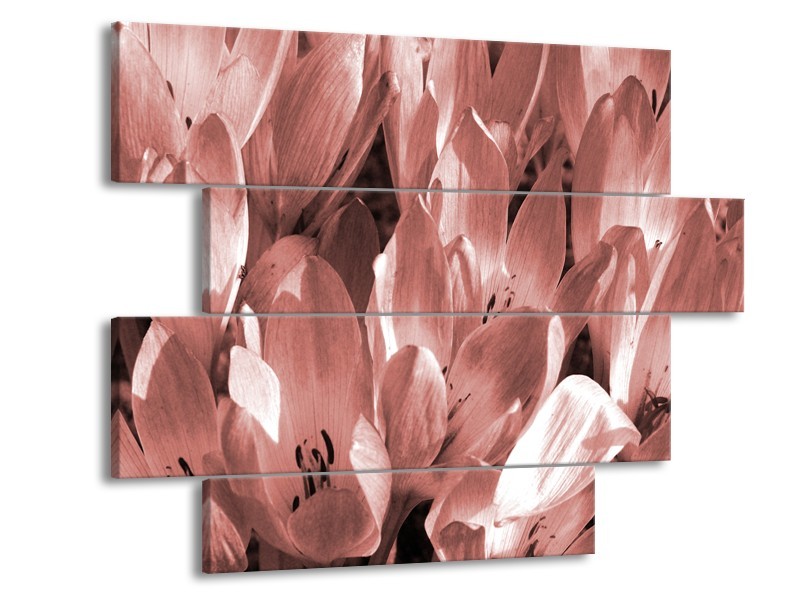 Canvas Schilderij Bloemen, Krokus | Bruin, Rood | 115x85cm 4Luik