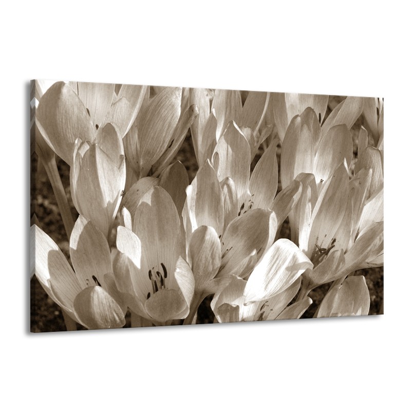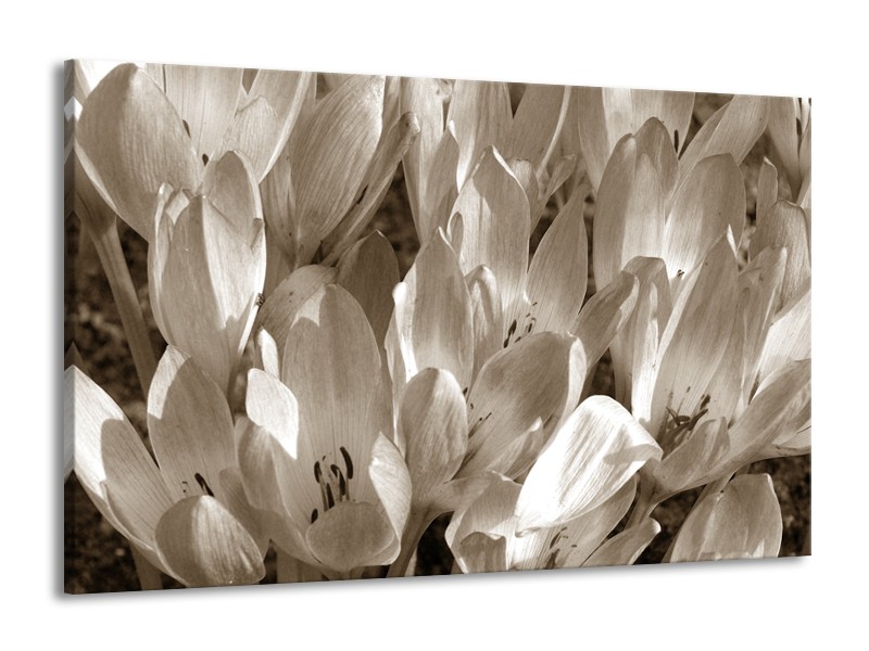 Canvas Schilderij Bloemen, Krokus | Sepia | 140x90cm 1Luik