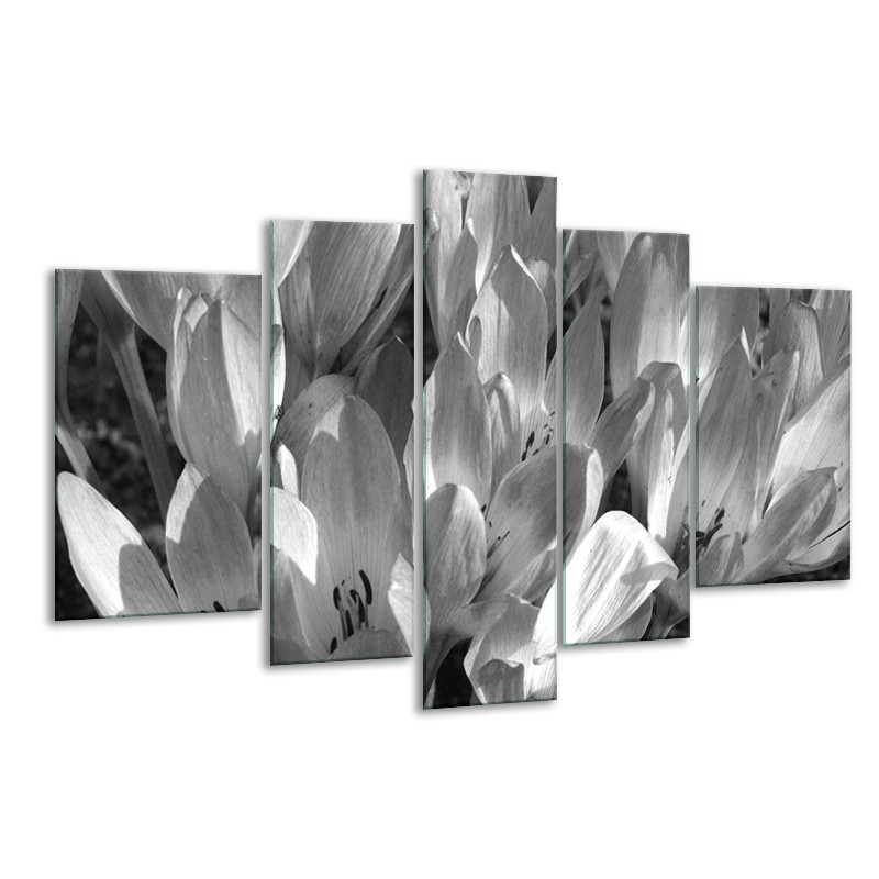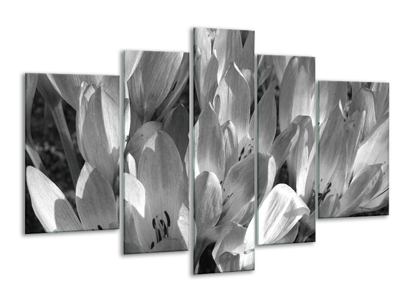 Canvas Schilderij Bloemen, Krokus | Zwart, Grijs | 170x100cm 5Luik