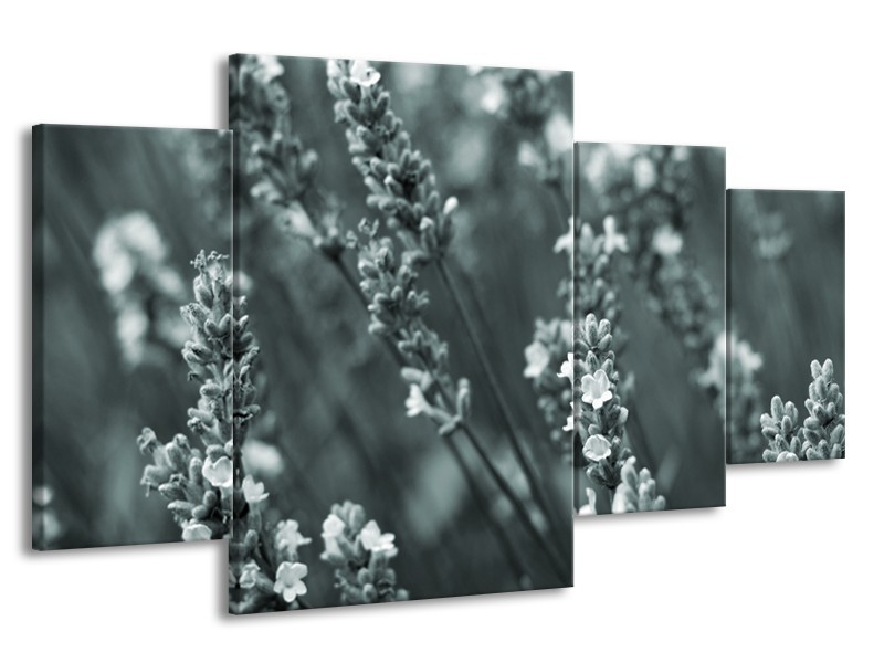 Canvas Schilderij Bloemen, Lente | Grijs, Groen | 160x90cm 4Luik