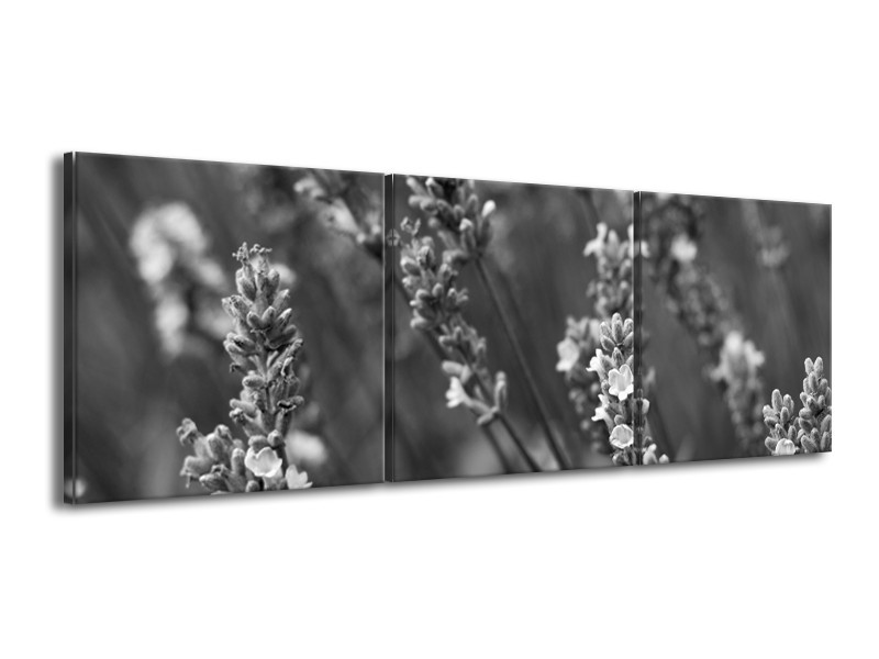 Canvas Schilderij Bloemen, Lente | Zwart, Grijs, Wit | 150x50cm 3Luik