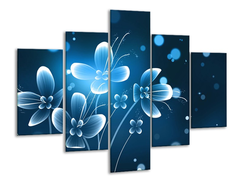 Canvas Schilderij Bloemen, Modern | Blauw, Wit | 100x70cm 5Luik