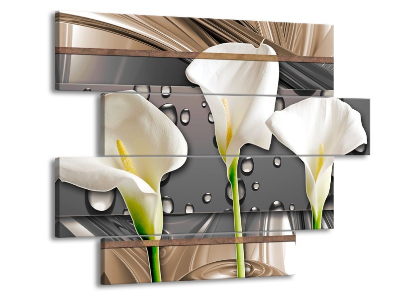 Canvas Schilderij Bloemen, Modern | Grijs, Bruin | 115x85cm 4Luik