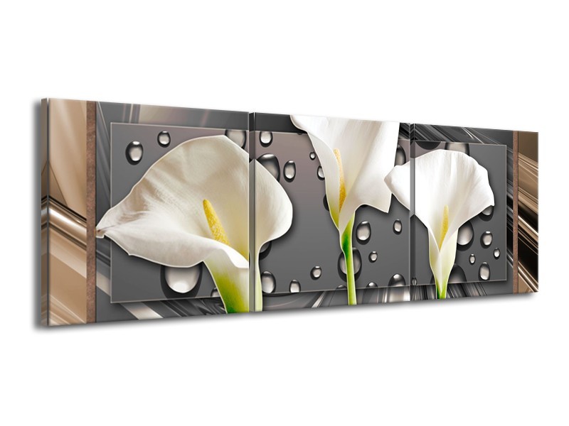 Canvas Schilderij Bloemen, Modern | Grijs, Bruin | 150x50cm 3Luik