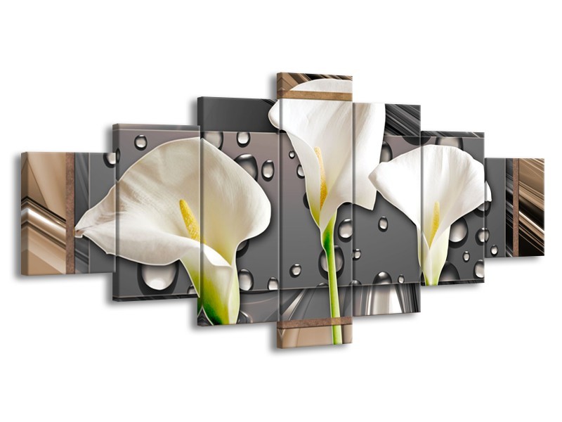 Canvas Schilderij Bloemen, Modern | Grijs, Bruin | 210x100cm 7Luik
