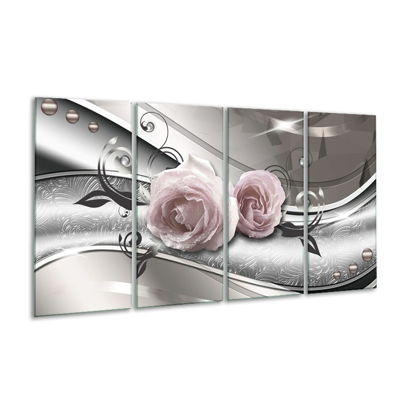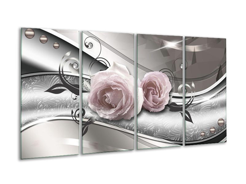 Canvas Schilderij Bloemen, Modern | Grijs, Roze | 160x80cm 4Luik