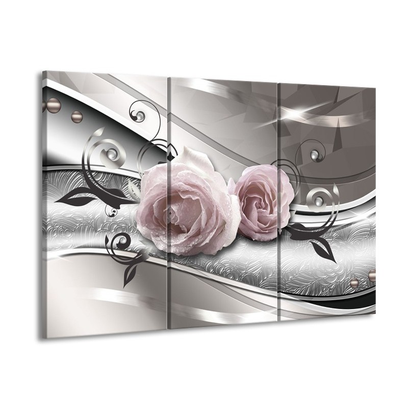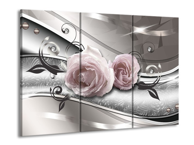 Canvas Schilderij Bloemen, Modern | Grijs, Roze | 60x90cm 3Luik