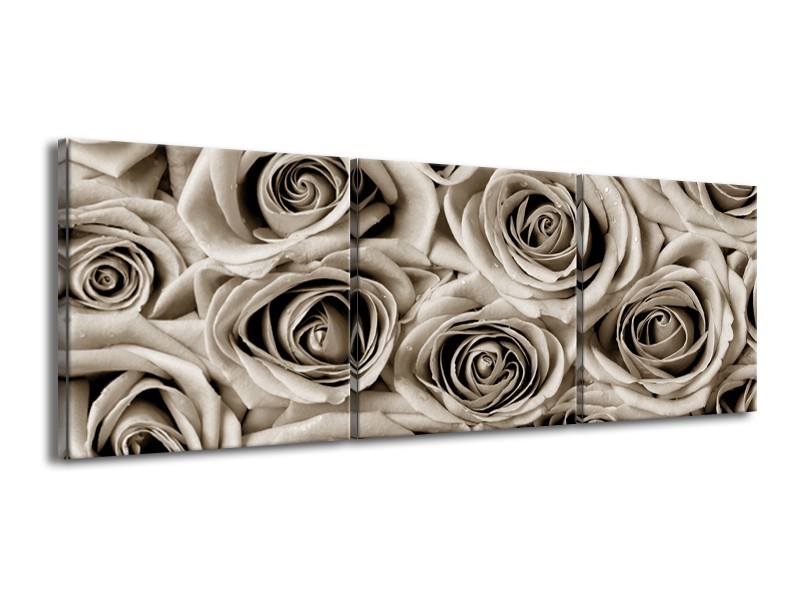Canvas Schilderij Bloemen, Roos | Sepia | 150x50cm 3Luik