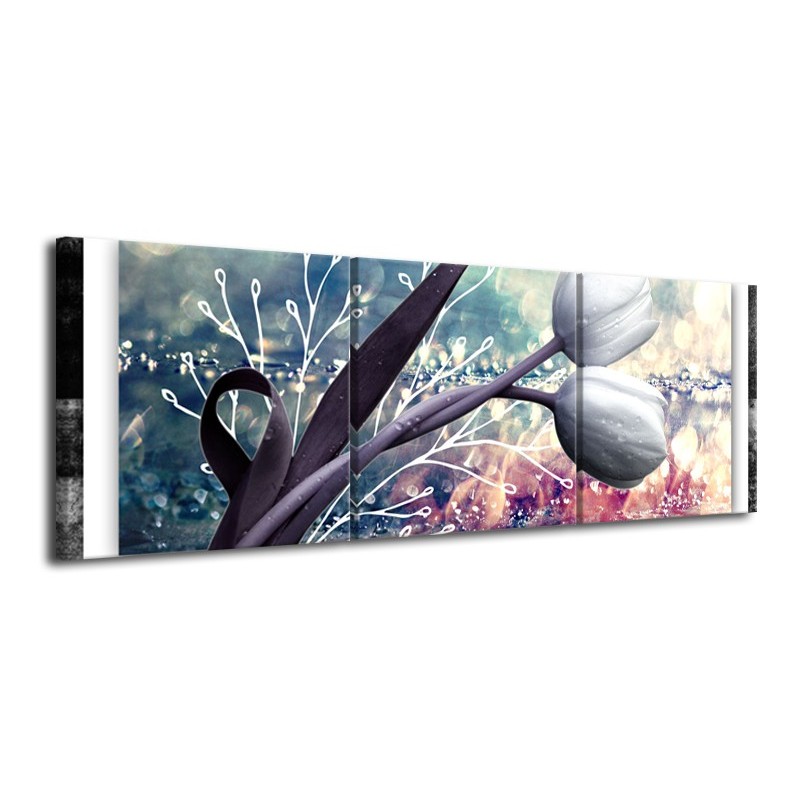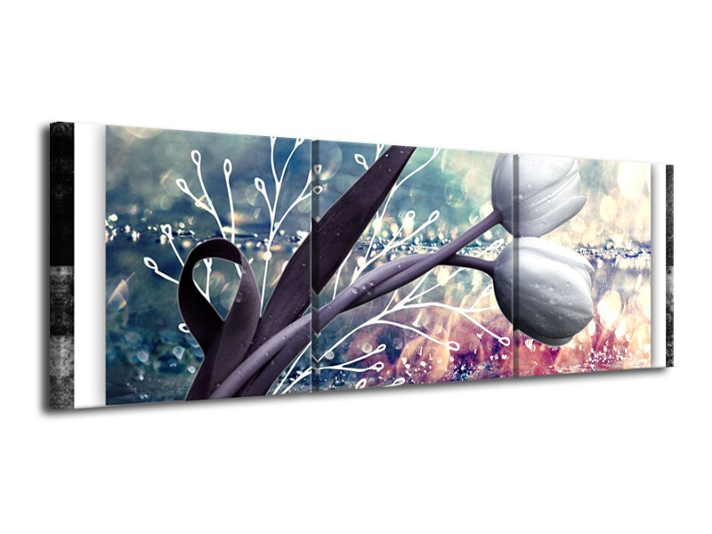 Canvas Schilderij Bloemen, Tulpen | Grijs | 120x40cm 3Luik