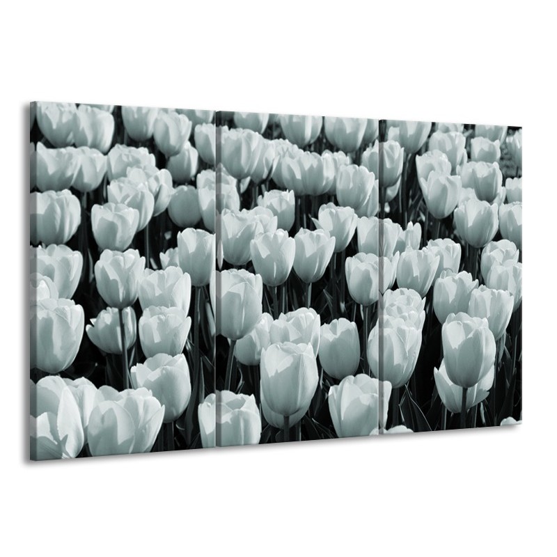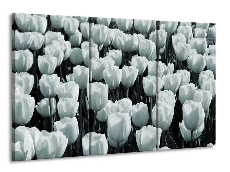 Canvas Schilderij Bloemen, Tulpen | Grijs, Groen | 165x100cm 3Luik
