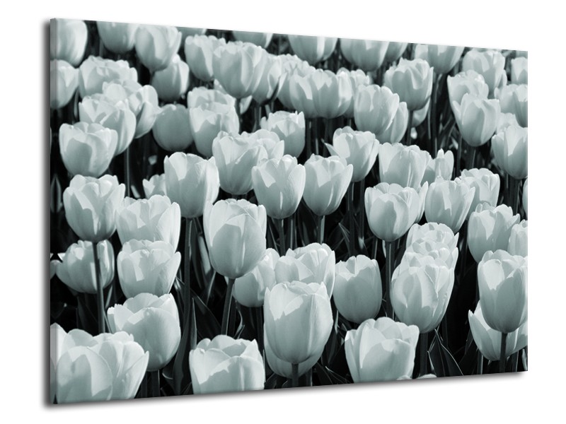 Canvas Schilderij Bloemen, Tulpen | Grijs, Groen | 70x50cm 1Luik