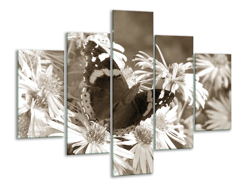 Canvas Schilderij Bloemen, Vlinder | Sepia, Bruin | 100x70cm 5Luik