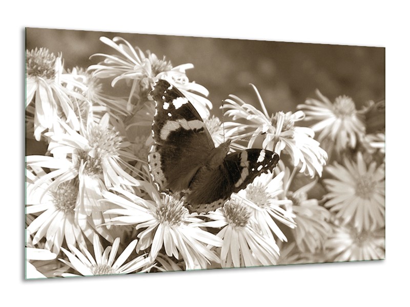 Canvas Schilderij Bloemen, Vlinder | Sepia, Bruin | 120x70cm 1Luik