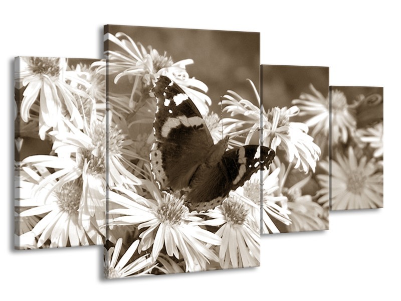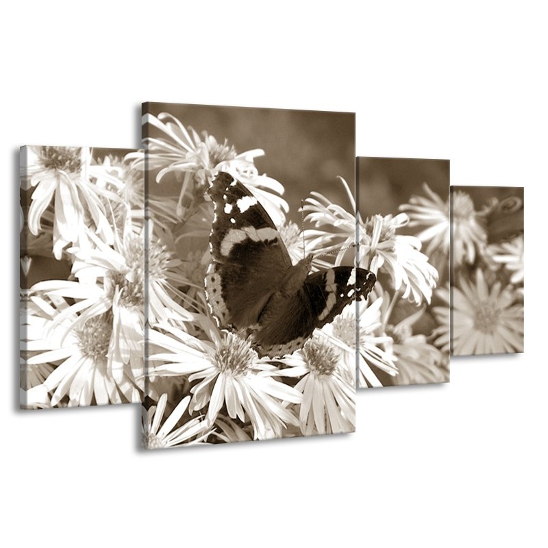 Canvas Schilderij Bloemen, Vlinder | Sepia, Bruin | 160x90cm 4Luik