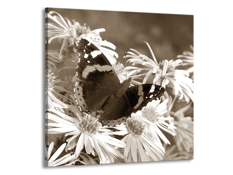 Canvas Schilderij Bloemen, Vlinder | Sepia, Bruin | 70x70cm 1Luik
