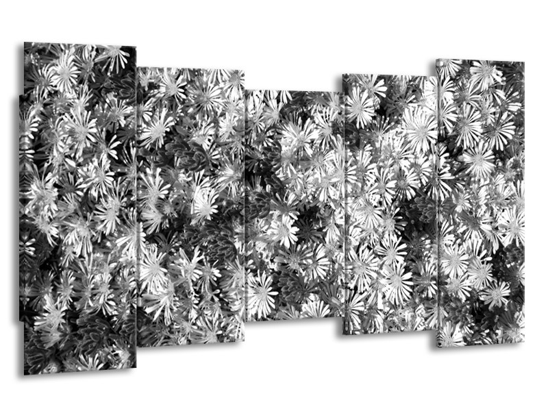 Canvas Schilderij Bloemen | Zwart, Wit, Grijs | 150x80cm 5Luik