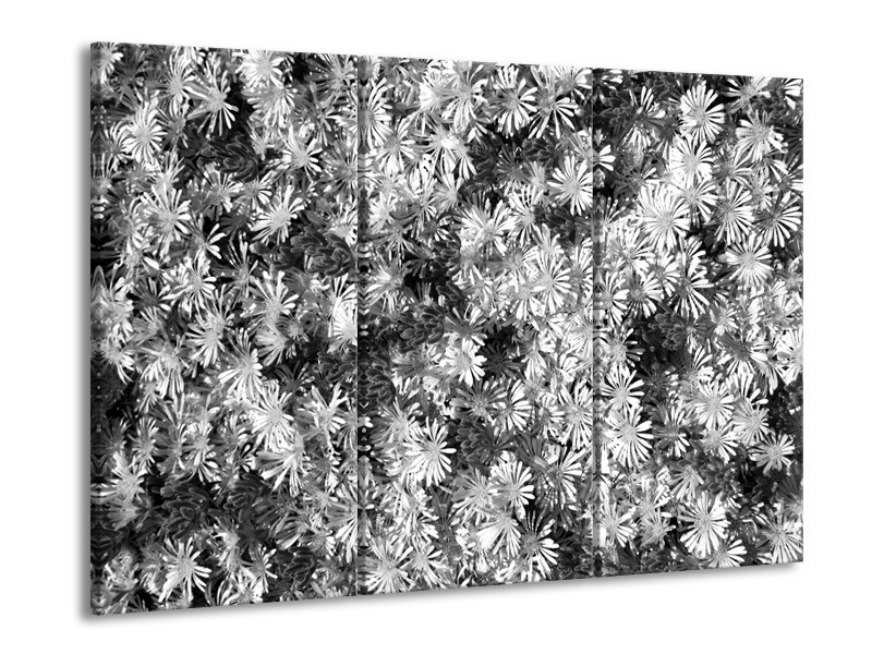 Canvas Schilderij Bloemen | Zwart, Wit, Grijs | 60x90cm 3Luik