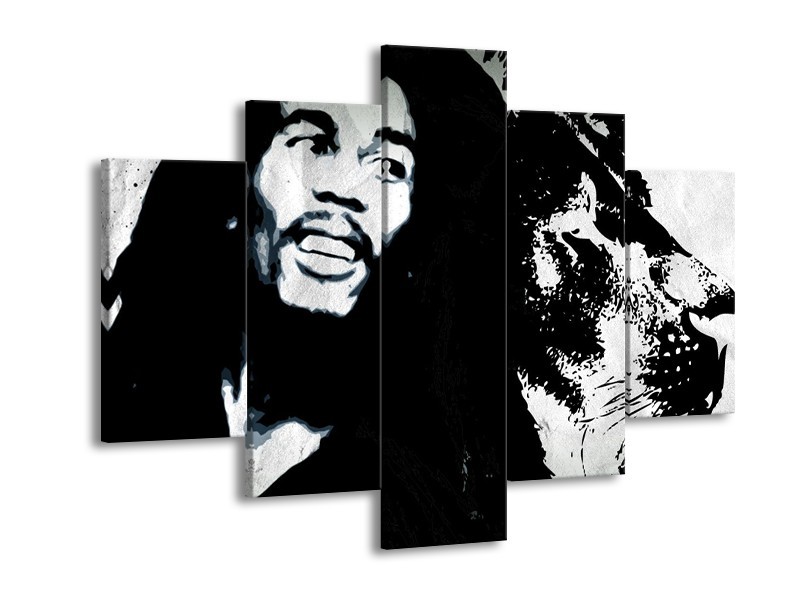 Canvas Schilderij Bob Marley | Zwart, Wit | 150x105cm 5Luik