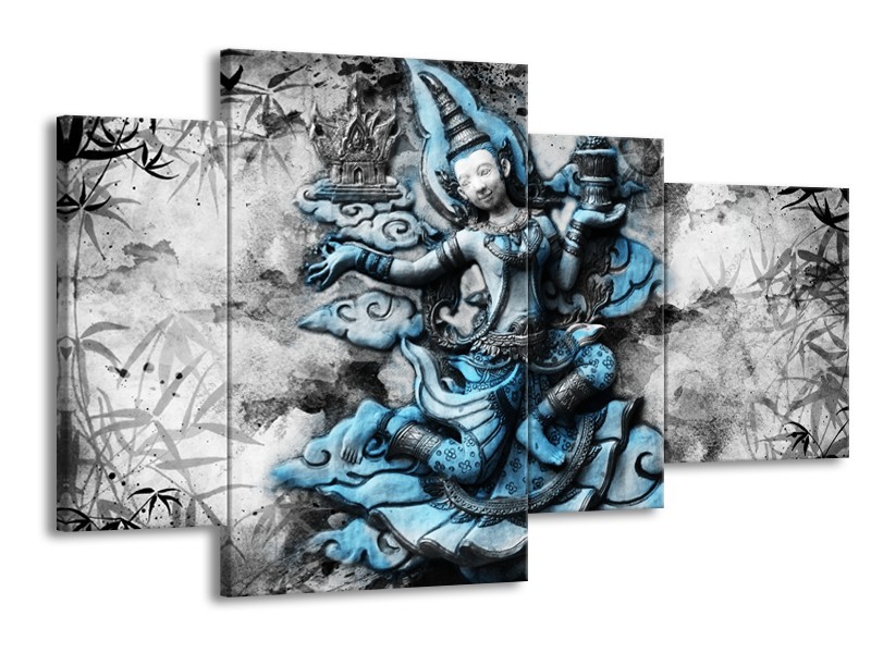 Canvas Schilderij Boeddha, Beeld | Blauw, Grijs, Zwart | 120x75cm 4Luik