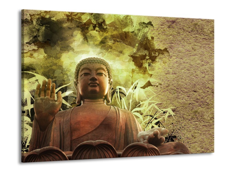 Canvas Schilderij Boeddha, Beeld | Bruin, Groen | 100x70cm 1Luik