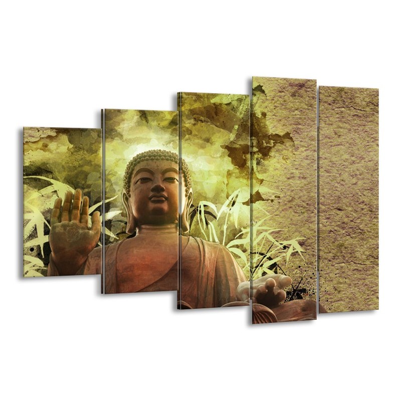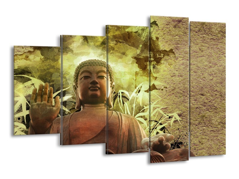 Canvas Schilderij Boeddha, Beeld | Bruin, Groen | 150x100cm 5Luik