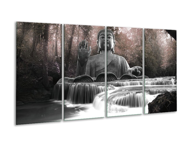 Canvas Schilderij Boeddha, Natuur | Grijs | 160x80cm 4Luik