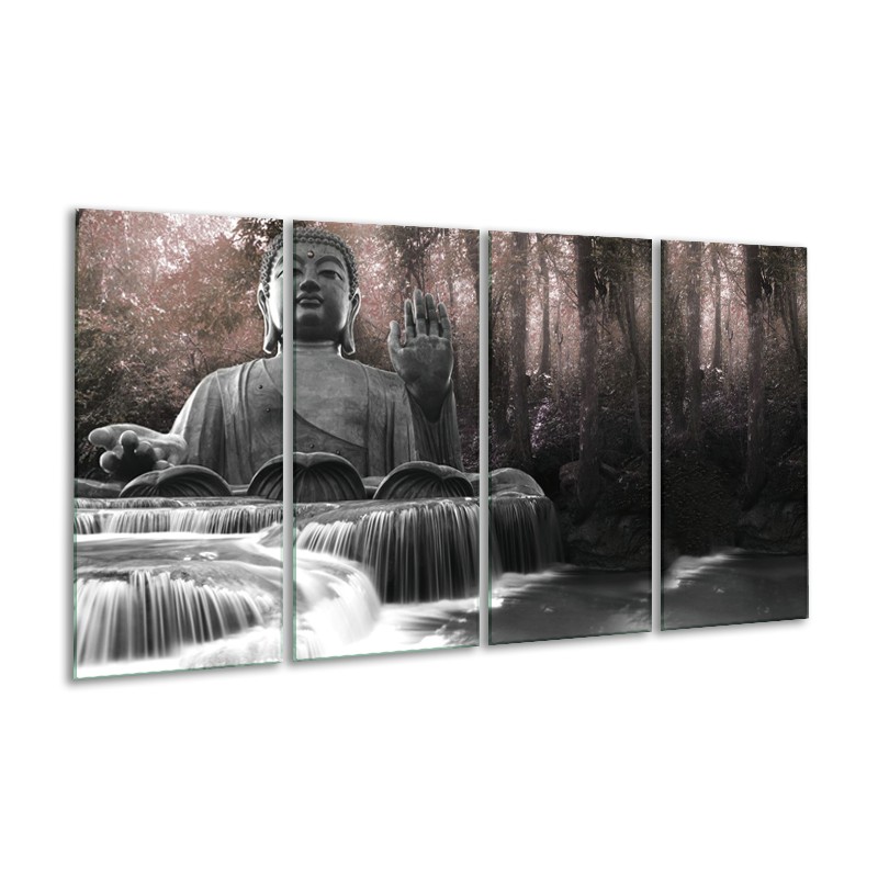 Canvas Schilderij Boeddha, Natuur | Grijs, Bruin | 160x80cm 4Luik