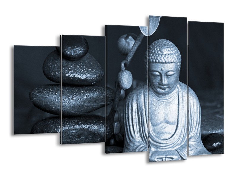 Canvas Schilderij Boeddha, Stenen | Blauw, Grijs, Zwart | 150x100cm 5Luik
