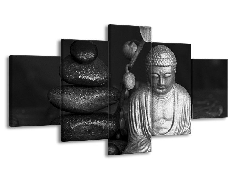 Canvas Schilderij Boeddha, Stenen | Zwart, Wit, Grijs | 150x80cm 5Luik
