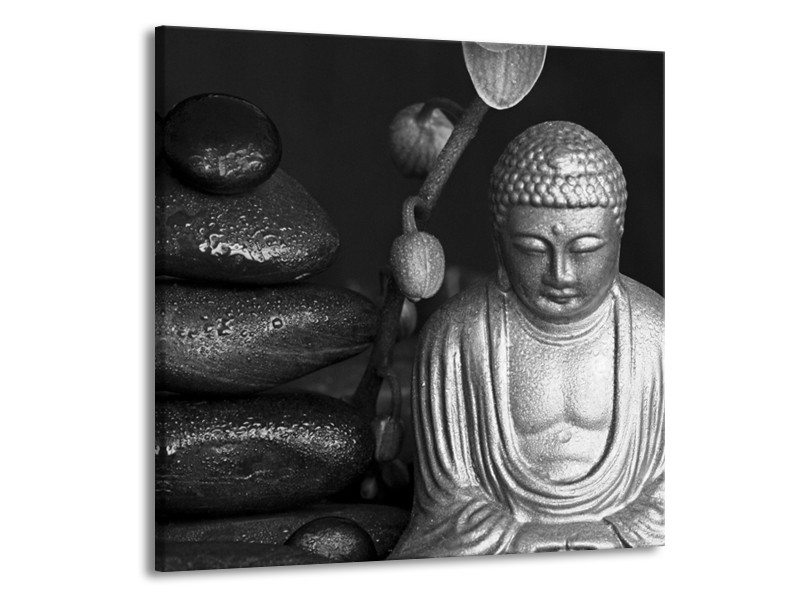 Canvas Schilderij Boeddha, Stenen | Zwart, Wit, Grijs | 50x50cm 1Luik