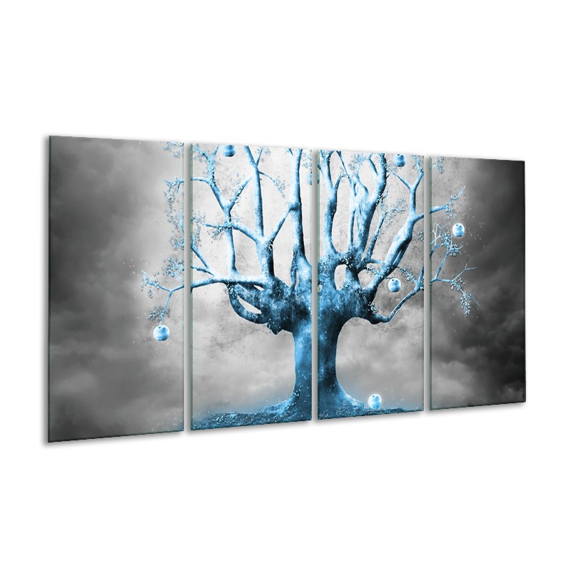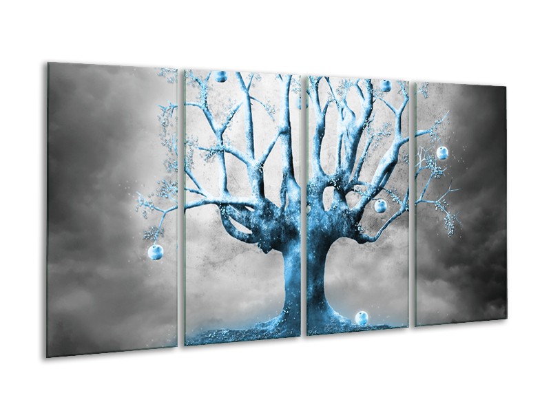 Canvas Schilderij Boom, Abstract | Blauw, Grijs, Wit | 160x80cm 4Luik