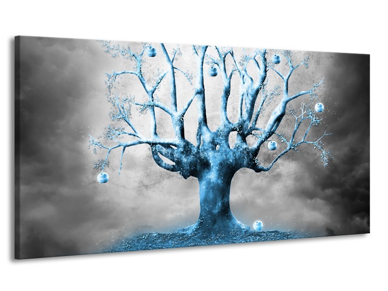 Canvas Schilderij Boom, Abstract | Blauw, Grijs, Wit | 170x90cm 1Luik
