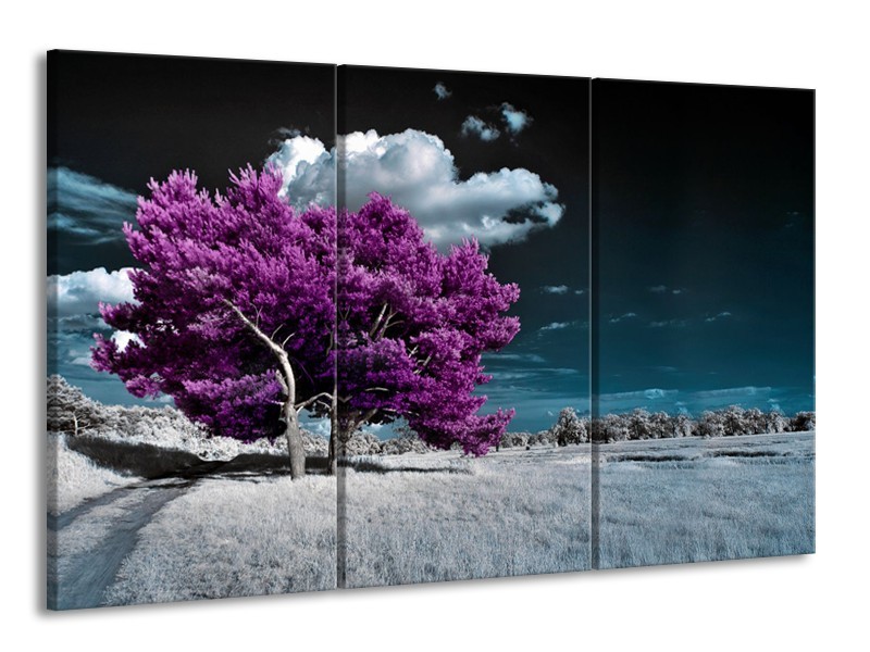 Canvas Schilderij Boom, Natuur | Paars, Blauw, Grijs | 165x100cm 3Luik
