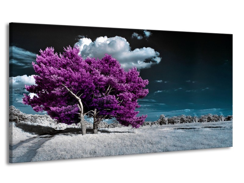 Canvas Schilderij Boom, Natuur | Paars, Blauw, Grijs | 170x90cm 1Luik