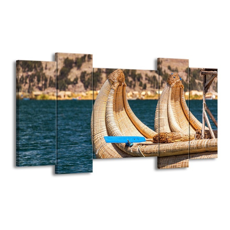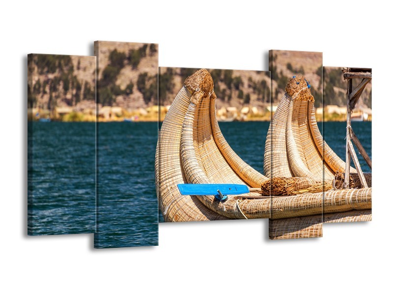 Canvas Schilderij Boot, Natuur | Geel, Bruin, Blauw | 120x65cm 5Luik