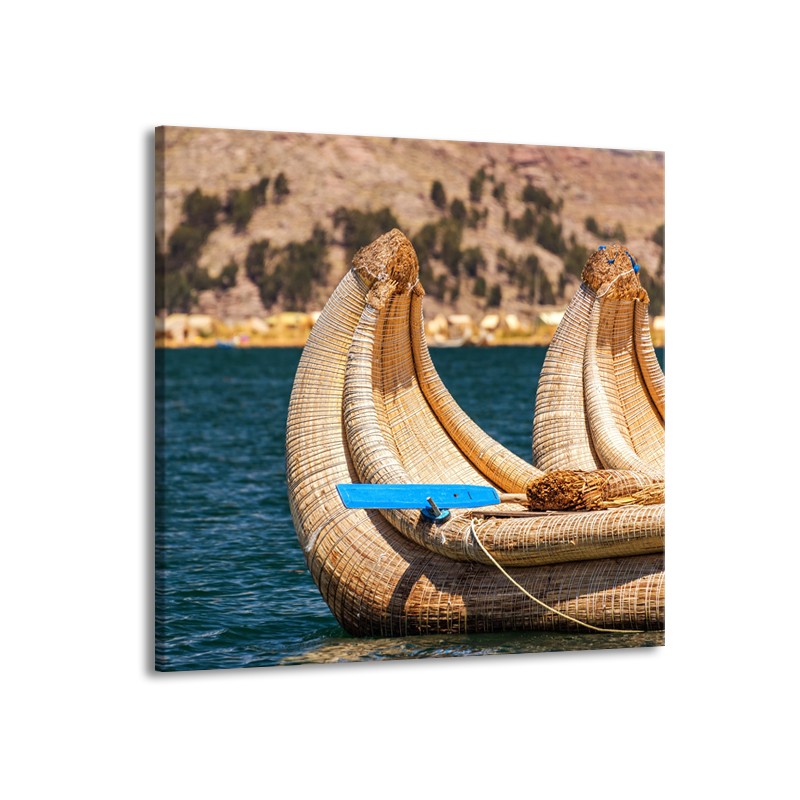 Canvas Schilderij Boot, Natuur | Geel, Bruin, Blauw | 70x70cm 1Luik
